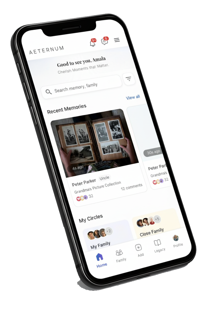 Built with privacy and permanence at its core, Aeternum empowers families to create and protect their digital heritage through features like: