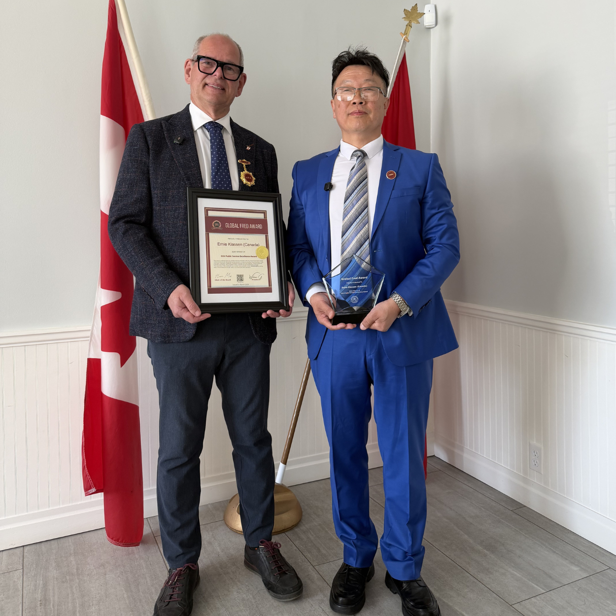 Canadian Member of Parliament Ernie Klassen Receives the Global Fred Award for Public Service Excellence