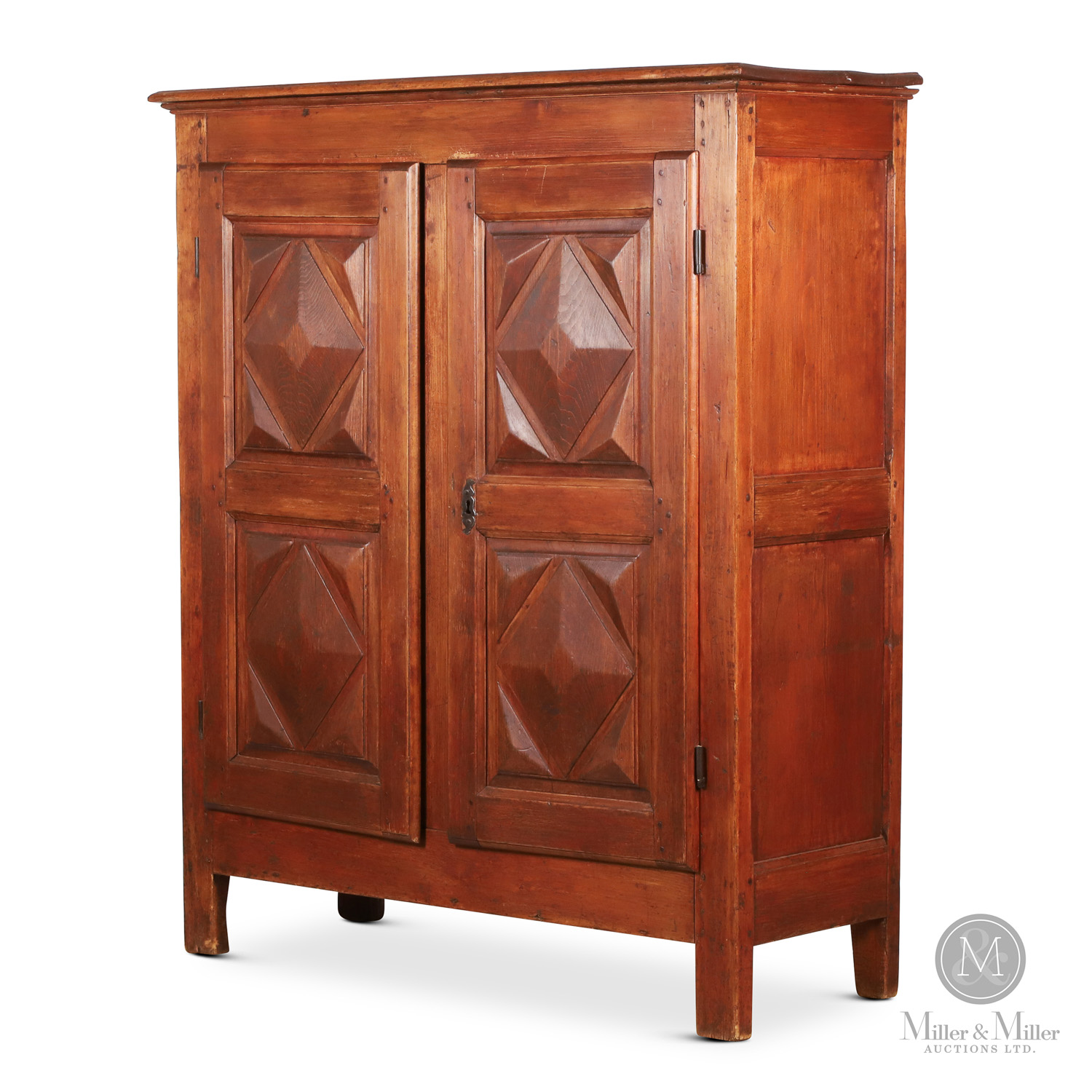 Lot 167 — Quebec Diamond Point Armoire: Quebec, 18th century pine diamond point armoire with traces of original red paint. Estimate: $12,000–$18,000 CAD.