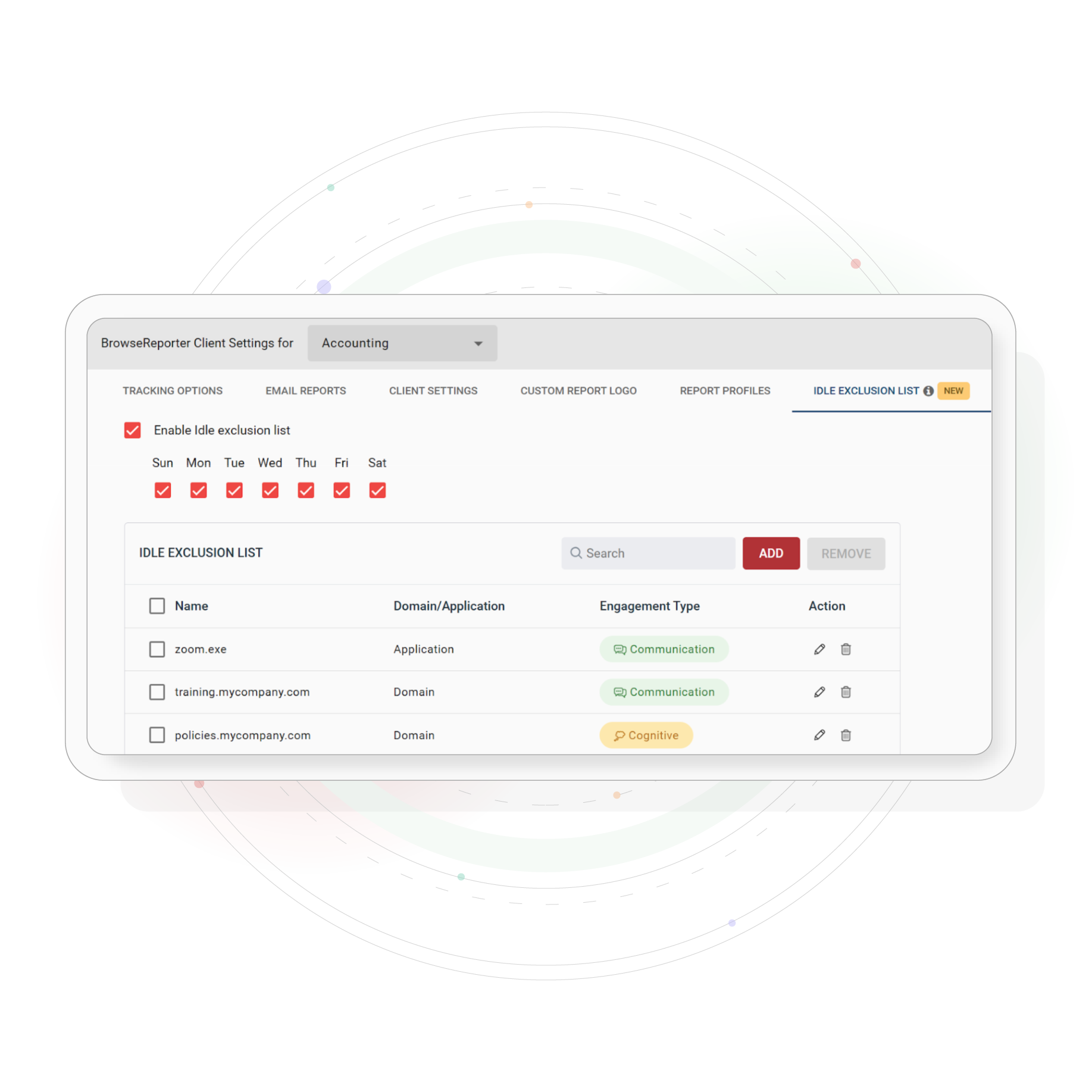 The new Idle Exclusion List in BrowseReporter solves this by allowing IT admins to exclude legitimate team communication and upskilling applications such as Microsoft Teams, Zoom, or Coursera from idle time detection, ensuring that engaged employees are recognized as active, not idle.