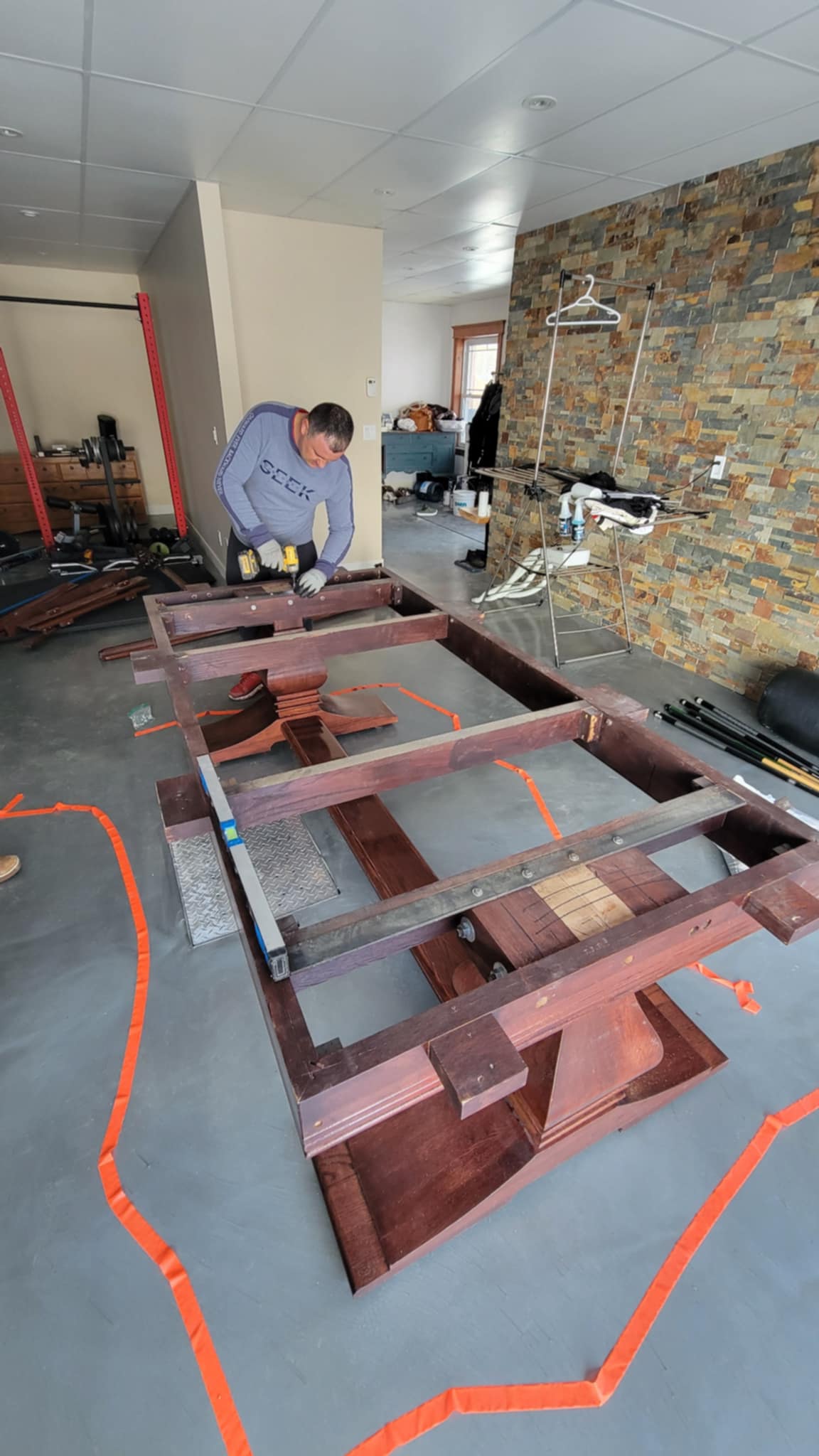 Professional Disassembly – Components such as cushions, rails, pockets, and slates are carefully removed, labeled, and wrapped in protective materials to prevent damage.
