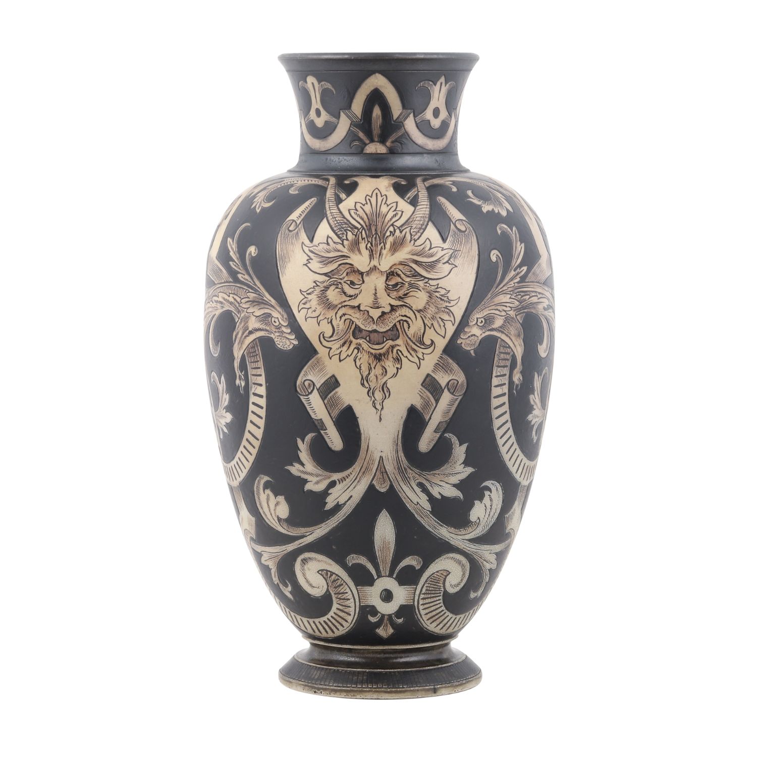 The Martin Brothers Pottery, produced in London and Southall, England, between 1873 and 1914 by Wallace, Walter, Edwin, and Charles Martin, is celebrated for its grotesque animal forms, caricatured human figures, and inventive glazing techniques inspired by Gothic and Renaissance revival movements, Japanese art, and later Art Nouveau.
