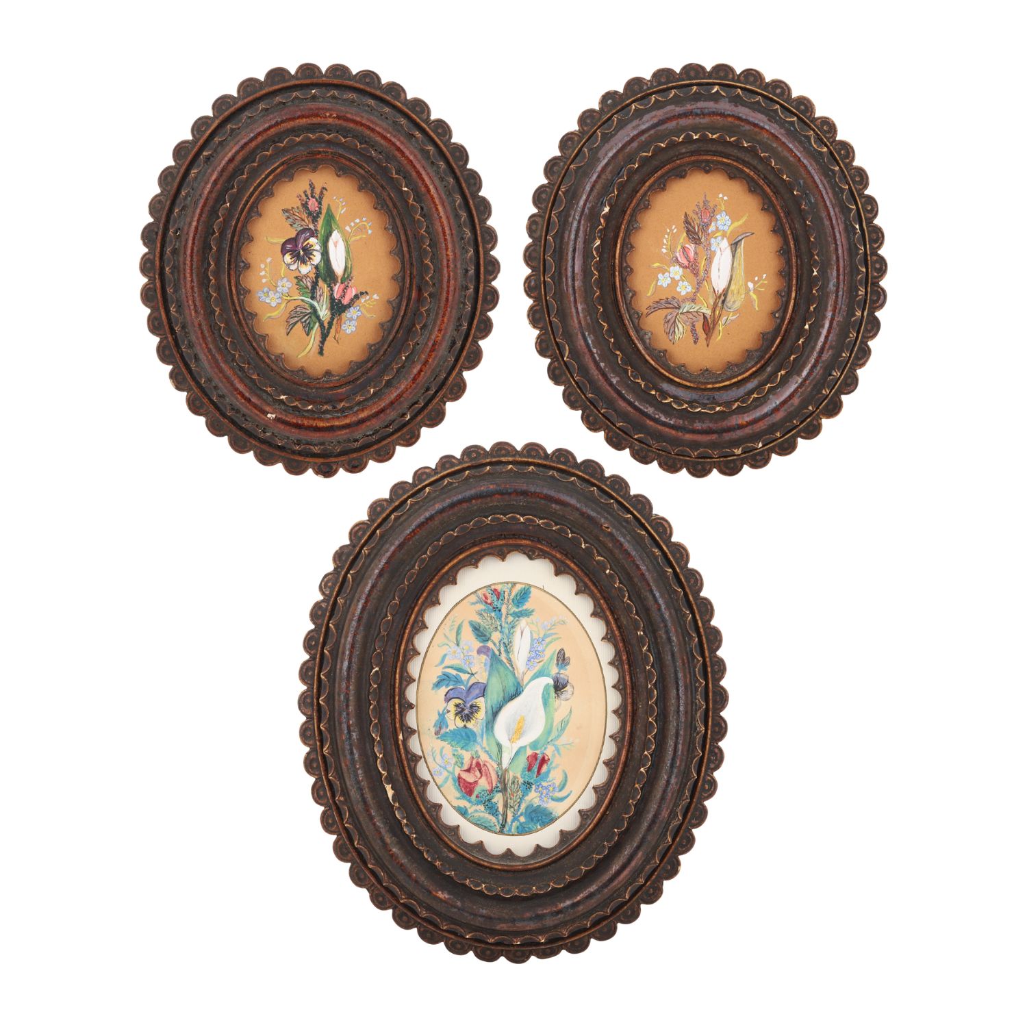 The top lot of this sale, a set of three Brantford Pottery picture frames (Lot 1), is stamped for three members of the Effner family and dates to 1863; the frames range from 9.5″ x 8″ x 2″ to 13″ x 10.5″ x 2″ and are in very good condition, with an estimate of CA$4,000–$6,000.
