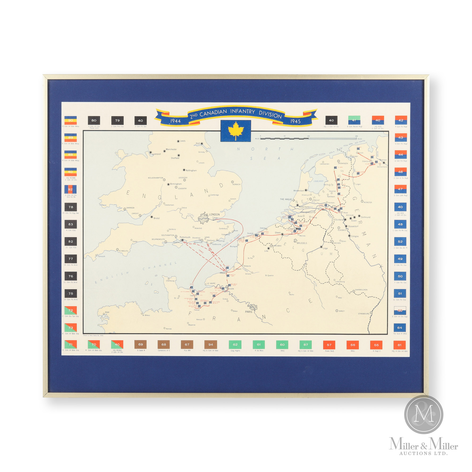 Canadian 2nd Canadian Infantry Division Operational Chart, depicting World War II troop movements 1944-1945, an original seldom seen regimental printing from 1945. (CA$325)