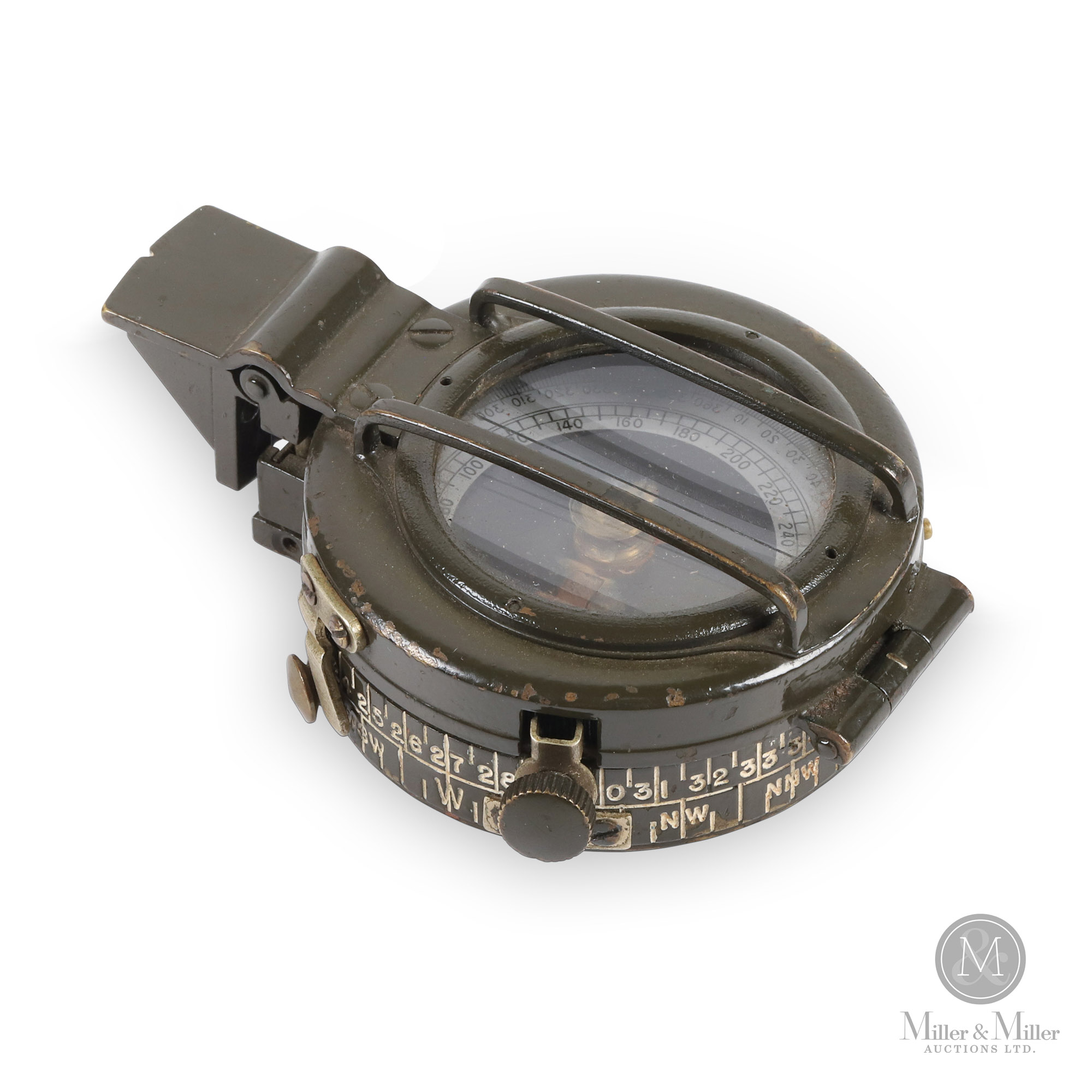 Canadian. C. 1943. Canadian Kodak Company Mk. IX prismatic compass. serial #9345C. Marked “CKC/C” for the Canadian Kodak Company. Estimate: CA$225-$325.