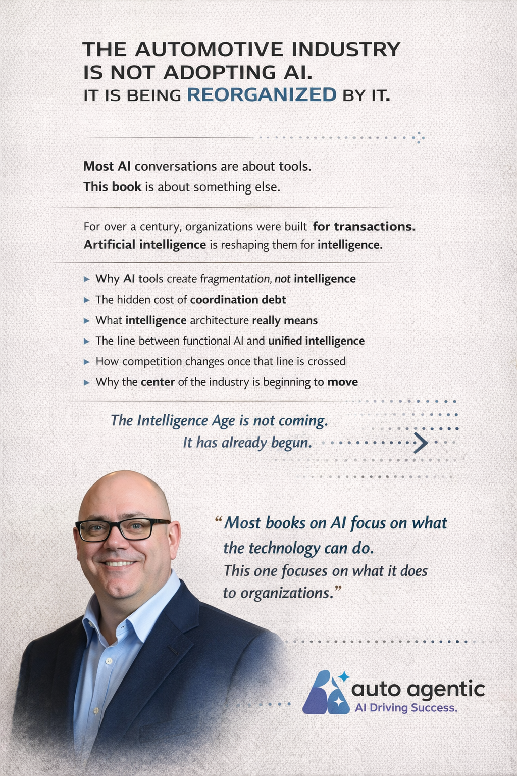 Part 3: Strategic Architecture and Implementation addresses OEM-dealer Intelligence coordination, shifting industry power dynamics, and the pioneer’s strategic choice between building during formation versus adopting during maturation. It presents a vision of a transformed competitive landscape in which Intelligence coordination becomes a baseline expectation, supported by comprehensive implementation tools designed for immediate organizational application.