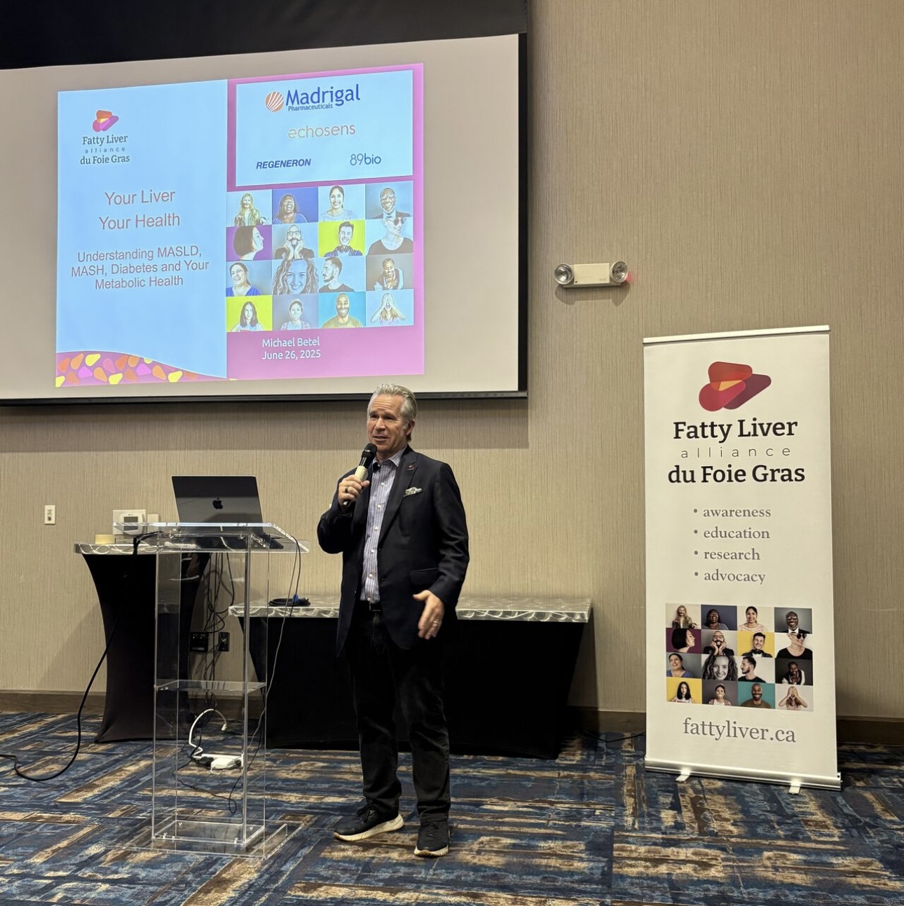 The Fatty Liver Alliance is a registered Canadian charity dedicated to raising awareness about the risks, causes, and complications of fatty liver disease, including MASLD and MASH. Through community education events, advocacy efforts, and partnerships with healthcare professionals, industry, and government, Fatty Liver Alliance empowers patients and families with knowledge and support. Its mission is to connect people at risk with appropriate care, advance early detection through non-invasive screening initiatives, and advocate for equitable access to emerging treatments. By amplifying the patient voice and driving collaboration across stakeholders, the Fatty Liver Alliance is helping to transform the future of liver health.