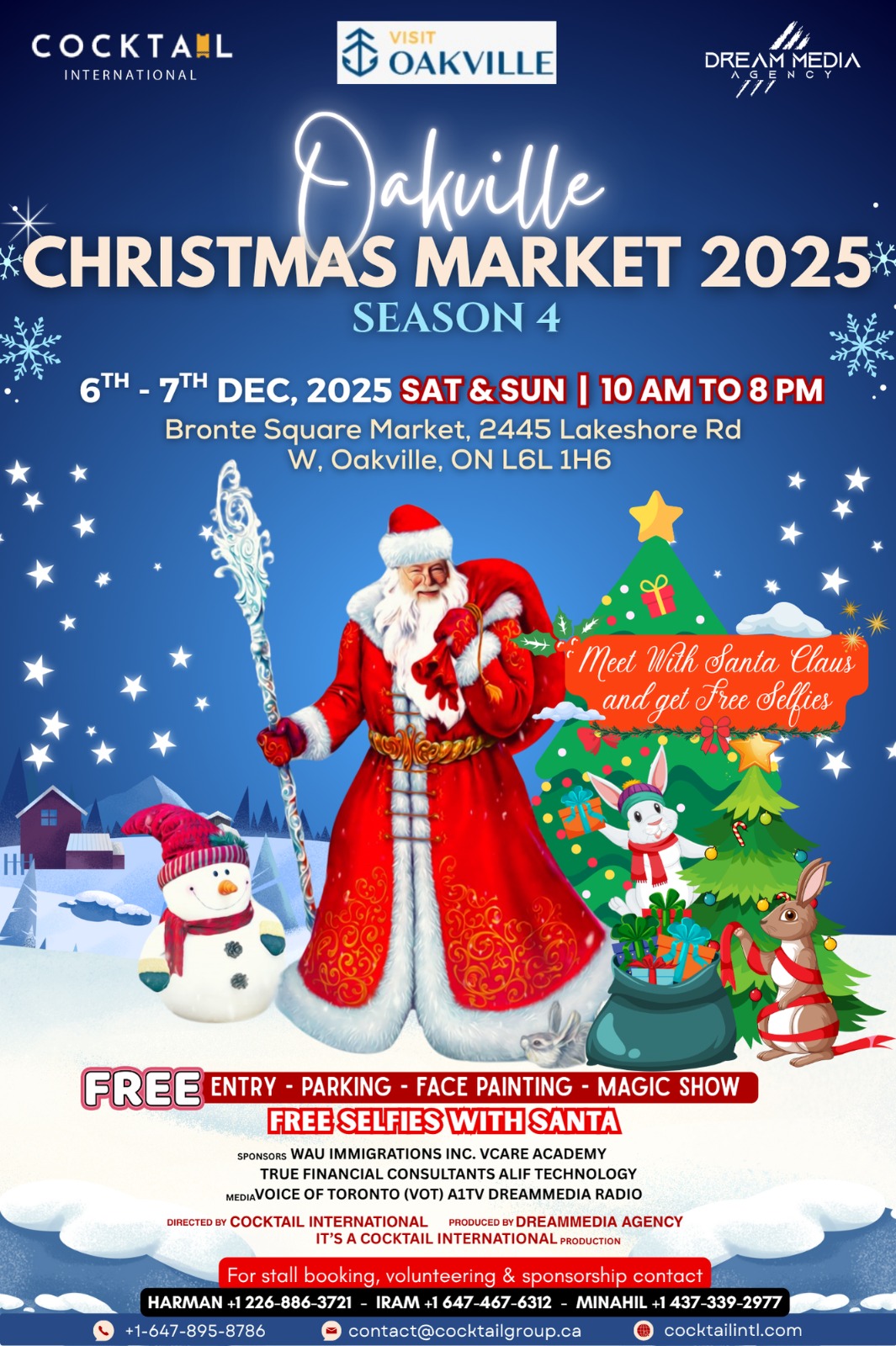“The Oakville Christmas Market isn’t just an event; it’s an investment in Oakville’s people and economy,” said Syed Alam, Director of Cocktail International. “Every vendor, performer, and visitor contributes to the vitality of the local business ecosystem — helping small enterprises thrive and building lasting community connections.”