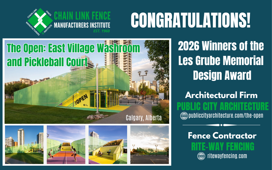 CLFMI member Rite-Way Fencing earned the award for installing The Open in Calgary’s East Village, a public facility recognized for creative chain link use.