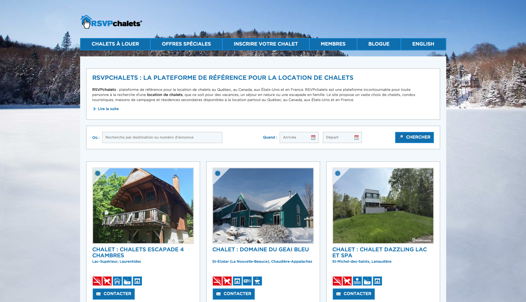 Aujourd’hui présente au Québec, ailleurs au Canada, aux États-Unis et en France, RSVPchalets propose une vaste sélection de chalets à louer, de condos touristiques, de maisons de campagne et de résidences secondaires, situés dans des régions reconnues pour la richesse de leurs paysages et leur attrait touristique.