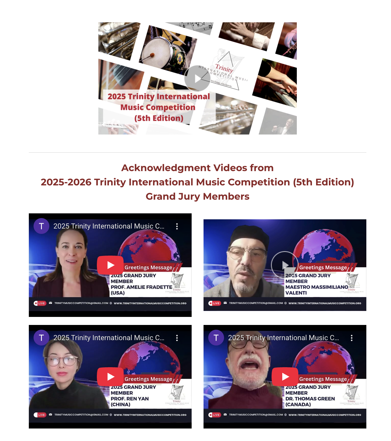 The Trinity International Music Competition is a high-caliber international online music competition dedicated to recognizing artistic excellence and providing meaningful global exposure for musicians of all ages and levels. Distinguished by its academic rigor, transparent scoring system, and elite adjudication standards, Trinity has earned the trust of educators, institutions, parents, and professional musicians worldwide.